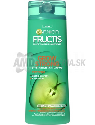 Šampón fructis grow strong, navrhnutý špeciálne pre slabé až lámajúce sa vlasy, obsahuje prírodný výťažok z jablka a posilňujúci ceramid na obnovu sily a hmoty vlasov.
