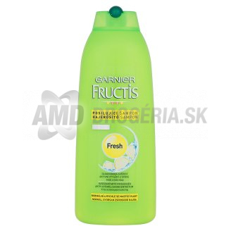 Posilňujúci šampón Garnier Fructis Fresh s aktívnymi výťažkami z ovocia na mastné vlasy. Vlasy budú čisté a svieže po dobu 48 hodín. Šampón posilňuje 100% vlasového vlákna. Koncentrované aktívne výťažky z ovocia pôsobia v každej časti vlasového vlákna, čím vlasom dodávajú viac sily zvnútra a viac lesku z vonku.