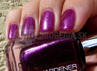 Gabriella salvy 134 je nádherný výrazný fialový lak. Nie je krémový s trblietkami, je skôr podobný foil lakom, má v sebe miliardy trblietavých fialových čiastočiek. Exkluzívne sa blyští a to bez aj slniečka