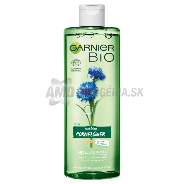 Objavte nový rad prírodnej kozmetiky Garnier BIO! Micelárna voda Garnier BIO Soothing Cornflower s organickou vodou z nevädze a jačmeňa čistí pleť a odstraňuje make-up bez viditeľných zvyškov. Prírodné zloženie s glycerínom má upokojujúce vlastnosti a je vhodné pre všetky typy pleti vrátane citlivej i nositeľky kontaktných šošoviek. Micelárna voda Garnier BIO Soothing Cornflower vás poteší sviežou aromatickou vôňou, ktorú si zamilujete!