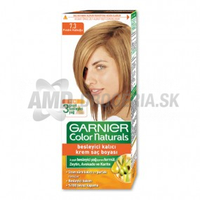 GARNIER COLOR NATURALS 7/3- ZLATÝ BLONDFarbiaci krém Garnier Color Naturals je obohatený o prírodný olivový olej, avokádo a karité. Olivový olej preniká spoločne s farbiacimi pigmentmi hlboko do štruktúry vlasov, a tak počas farbenia sa zároveň stará o vlasy! A výsledok? Intenzívne žiarivá, sýta farba a zdravé farbené vlasy.Zanecháva ich výnimočne hebké na dotyk, neuveriteľne lesklé a nádherné na pohľad. Farbiaca zmes sa nanáša štetcom, príjemne vonia ovocnou vôňou a vďaka jedinečnému krémovému zloženiu pri aplikácii nesteká.Balenie:1 fľaštička oxidačného činidla . . 60ml1 tuba s farbiacim krémom . . 40 ml1 záverečná starostlivosť . . 10ml1 pár rukavíc, 1 návod na použitie