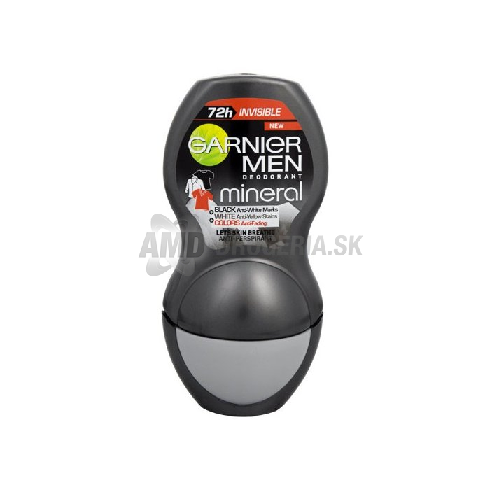 GARNIER Men Mineral Neutralizer, roll on Svieža vôňa antiperspirantu Garnier Men Mineral s aktívnymi látkami zabezečí spoľahlivú ochranu počas 72 hodín. Nemusíte sa obávať žiadnych mokrých a nevzhľadných škvŕn v podpazuší. Mineralitou - je ultra-absorpčný minerál vulkanického pôvodu, ktorý je schopný absorbovať vlhkosť až do päťnásobku svojho vlastného objemu. Úplne garantuje suché podpazušie ihneď po aplikácii Emulzná formula - sa stará o to, aby na pokožke a na oblečení nezostávali zvyšky dezodorantu, z ktorých sa pri procese prania a žehlenia stávajú nevzhľadné žlté škvrny. Pokožka voľne dýcha! Minerál stimuluje dezodoračnú účinnosť, zároveň však neblokuje póry. Výsledkom je suchá, nelepkavá pokožka a podpazušie, ktoré voľne dýcha!