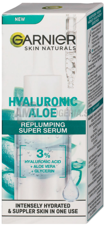 Garnier Hyaluronic Aloe vyplňujúce supersérum je prvým sérom od značky Garnier s vysokou koncentráciou (3%) glycerínu, kyseliny hyaluronovej a aloe vera, ktorého cieľom je poskytnúť hladšiu, pružnejšiu a pevnejšiu pleť už po prvom použití. Čistá kyselina hyaluronová má schopnosť viazať až 1000x viac vody, než váži sama, a tak vyplňuje pokožku. Aloe vera bola vybraná pre svoje hydratačné účinky. Po použití tohto séra sa pleť stáva hladšou, pružnejšou a pevnejšou. Po mesiaci pravidelného používania je pleť ešte vláčnejšia, žiarivejšia a pôsobí zdravo.