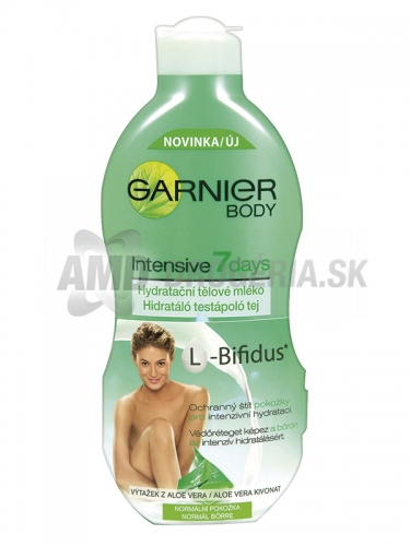 Telové hydratačné mlieko Garnier Intensive 7 days s Aloe Vera určené pre normálnu pokožku.