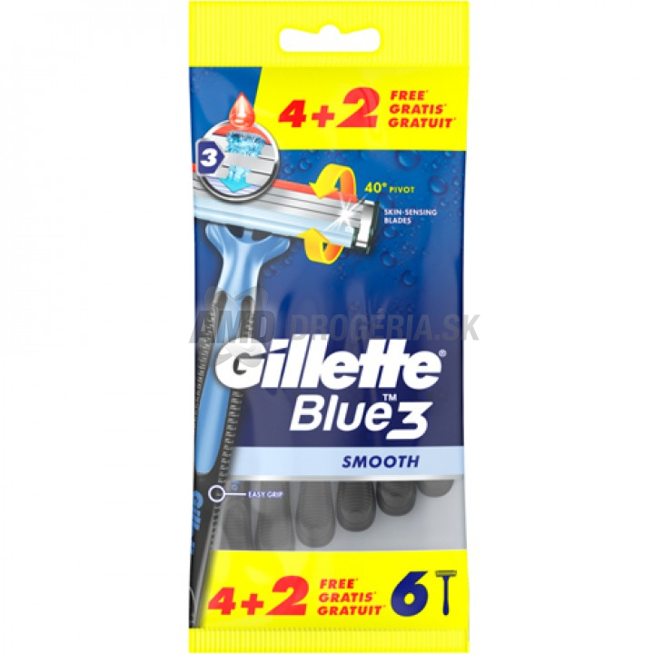 Pánsky jednorazový holiaci strojček Gillette Blue3 ponúka hladšie oholenie a o 100% ľahšie oplachovanie (v porovnaní s Blue II).