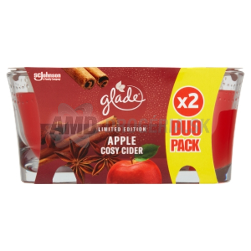 Vonná sviečka v skle Glade APPLE COSY CIDER. Obsah DUO 129g. - príjemná vôňa pre navodenie hrejivej a príjemnej atmosféry vášho domova alebo kancelárievhodná nielen na dekoráciu