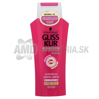Popis:Gliss Kur Satin Relax regeneračný šampón na vlasy 250 mlHladké vlasy bez krepovateniuOslňujúci lesk saténuKomplex proti krepovateniu, uhladenie a saténový leskJemné uhladenie nepoddajných a suchých vlasov:Šampón Satin Relax s komplexom proti krepovateniu uhladzuje vlasy a dodáva im fascinujúce saténový lesk.Receptúra Satin Relax so saténovým leskom a Komplexom proti krepovateniu skrotí aj nepoddajné vlasy dokonca aj vo vlhkom počasí a dodá im saténový lesk.Použitie:Jemne vmasírujte do mokrých vlasov.Dôkladne opláchnite!