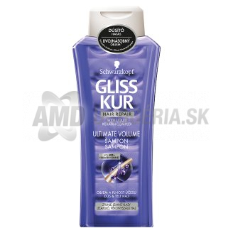 Šampón Gliss Kur Ultimate Volume na jemné vlasy bez objemu. Vysokoúčinná receptúra s Lipid+Collagen Komplexom obnovuje poškodenie vlasov, dodáva vlasom hustotu a navracia im prirodzenú pružnosť a dlhotrvajúci objem*. Pre dvojnásobný objem* a bohatú hustotu vlasov.