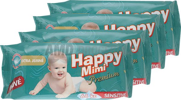 Happy MIMI Premium detské vlhčené obrúsky (4 x 64 ks).