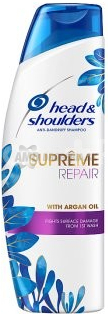 S Head & Shoulders Supreme Repair šampónom proti lupinám budú vaše vlasy intenzívne hydratované. Jeho jedinečné zloženie bojuje proti lupinám a zároveň zohľadňuje potreby dlhých vlasov. Arganový olej prispieva k hĺbkovej hydratácii a výžive vlasov od korienkov až po končeky.