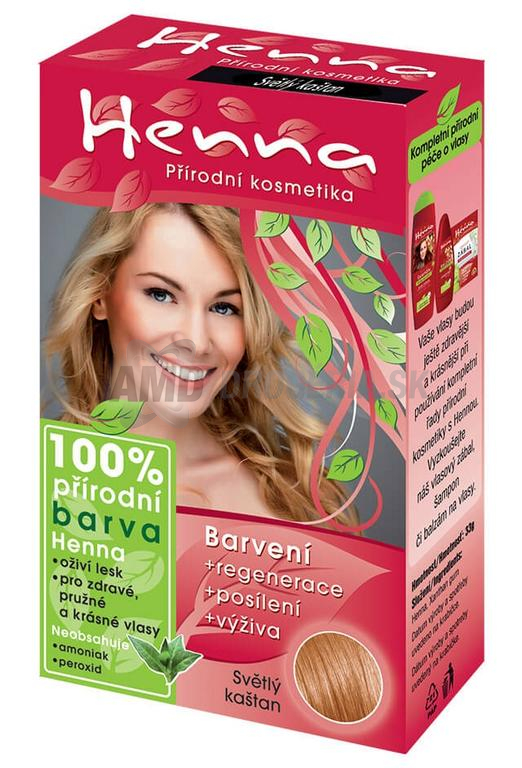 Henna je 100% prírodná farba na vlasy, dodáva vlasom potrebné vitamíny, vlasy jej použitím získajú lesk, Henna zabraňuje tvoreniu lupín a je veľmi vhodná pri alergiách kože a pri ochoreniach vlasov.