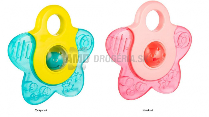 Canpol babies Vodná chladiaca hryzačka s hrkálkou Hviezda tíši bolesť ďasien v období rastu zúbkov. Je vyrobená z hygienického, mäkkého materiálu, s nerovným povrchom, ktorý jemne masíruje opuchnuté ďasná. Vyplnená mikrobiologicky testovanou destilovanou vodou. Dobre sa drží v malých detských ručičkách. Pred podaním dieťaťu nechajte schladiť v chladničke. Nezmrazujte ani nevyvárajte!