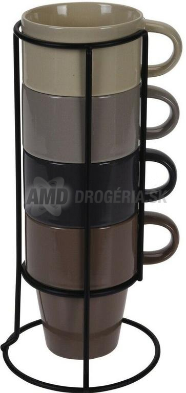 Sada štyroch kameninových hrnčekov v jemných prírodných odtieňoch vám spríjemní každý deň Hrnčeky sú vhodné na podávanie horúcich a studených nápojov Balenie obsahuje 4 hrnčeky v v prírodných farbách a praktický stojan