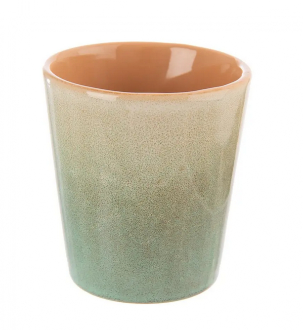 Pohodová chvíľa pri dobrej káve! Tento zaujímavo glazovaný hrnček bez ucha s masívnou stenou a originálnou farebnosťou (každý kúsok trochu iný) nadchne milovníkov cappuccina, lunga či klasického turka.