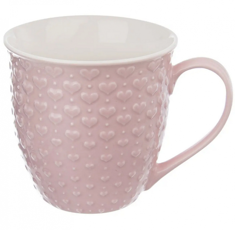 Vychutnajte si obľúbenú kávu, sypaný čaj či dokonca polievku v tomto objemnom staroružovom keramickom hrnčeku s plastickým dekorom srdiečok. Praktický na nápoje aj ohrev v mikrovlnke – ideálny, keď nemáte po ruke misku alebo tanier.