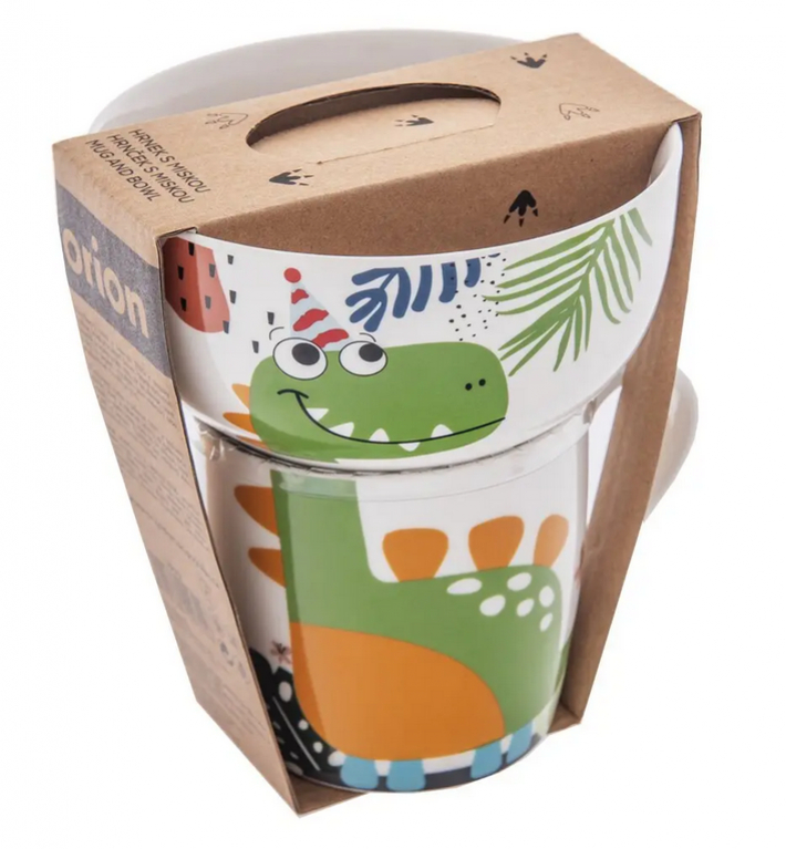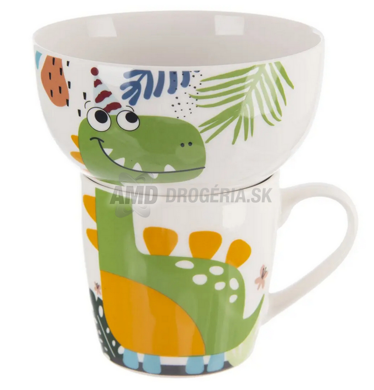 Raňajky vás naštartujú a zároveň môžu byť zábavné – nielen pre dospelých, ale aj pre deti. Misku a hrnček zdobí pekný dekor veselého dinosaura, takže spolu tvoria harmonický celok.
