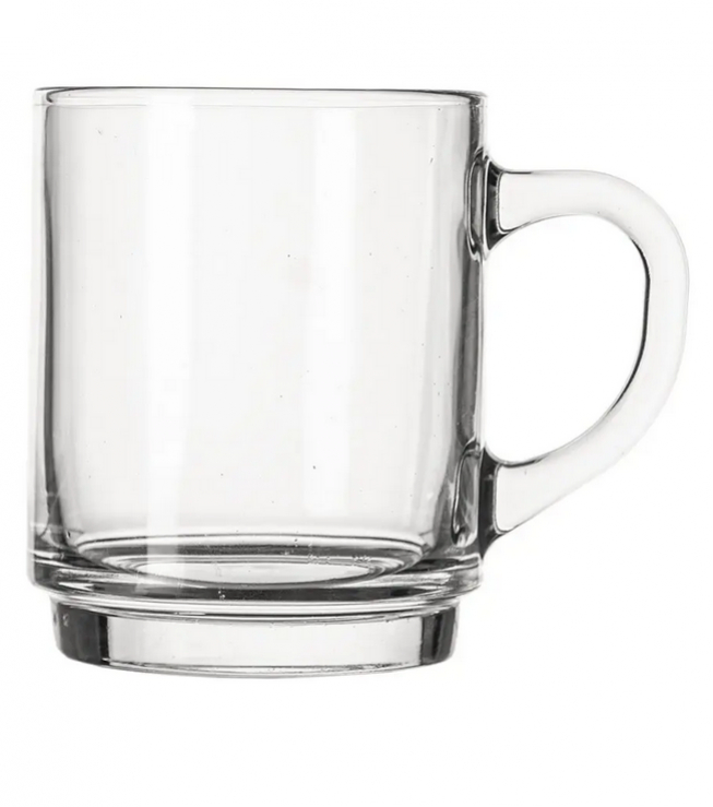 Priestranný rovný sklenený hrnček s pohodlným uchom je must-have pre milovníkov kávy a čaju.
