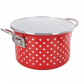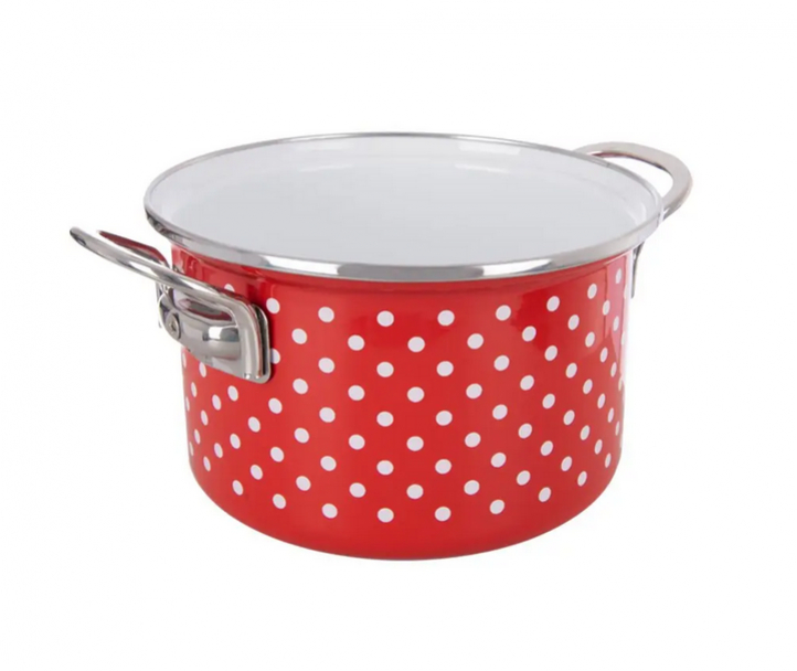 Hrniec s nerezovým lemom je univerzálny: varíte v ňom polievky, omáčky, mäsové zmesi, obľúbené prílohy, rezance do polievky, ale aj na zapečenie či dotiahnutie mäsa v rúre. Vonkajší priemer 18 cm, vnútorný 16 cm. Smaltovaný povrch (tavenina podobná sklu na oceľovom základe) je odolný a úplne zdravotne nezávadný.