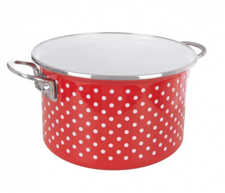 Hrniec s nerezovým lemom je všestranný: použijete ho na polievky, omáčky, mäsové zmesi, prílohy, rezance do polievky, zapečenie či dotiahnutie mäsa v rúre. Vonkajší priemer 22 cm, vnútorný 20 cm. Smalt (tavenina podobná sklu na oceľovom základe) tvorí odolný a úplne zdravotne nezávadný povrch.