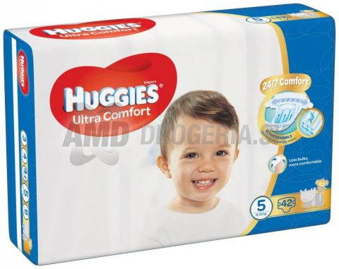 Plienky pre deti vážiace 16–25 kg, rýchla absorpcia vlhkosti, jedinečný pohodlný tvar, elastický pás, pružné lepiace ušká a dokonalý tvar plienky, priedušný materiál, registrované obrázky v plienkach. Rýchla absorpcia vlhkosti – Huggies® Ultra Comfort plienky dokonale a veľmi rýchlo absorbujú vlhkosť, ktorú uzamknú vo vnútri plienky.