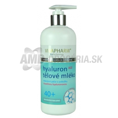 Intenzívne telové mlieko s kyselinou hyalurónovou. Obsahuje nízkomolekulárne kyselinu hyalurónovú, ktorá sa nazýva molekula mladosti pre svoju prirodzenú schopnosť udržiavať hydratovanú a pevnú pokožku. Viaže na seba vodu a tým pomáha vyhladzovať drobné defekty pokožky (strie, celulitída).