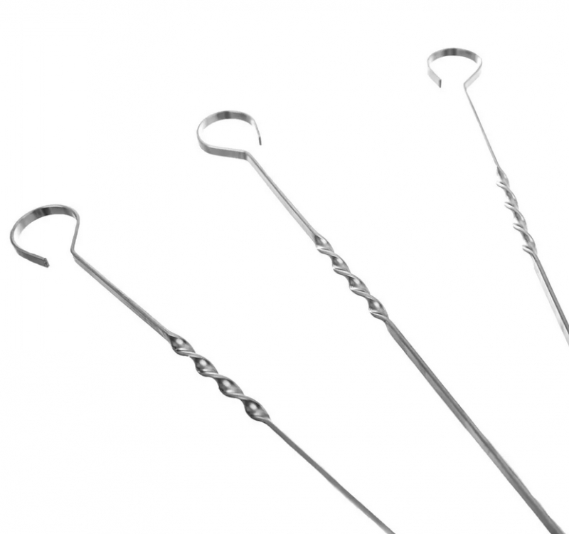 Tieto dlhé nerezové ihly uľahčia napichovanie mäsa, zeleniny či údenín a ich pečenie v rúre, na grile alebo panvici. Nevyhnutné pre mäsové špízy, zeleninové špízy aj kebab z mletého mäsa.