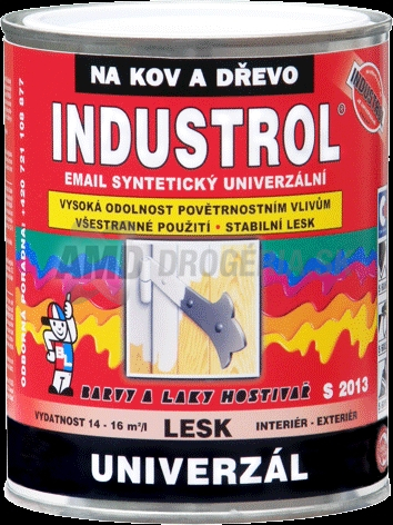 Popis:Industrol S 2013 je syntetická farba lesklá univerzálna, určená k vrchným lesklým náterom priemyselných výrobkov, konštrukcié, strojov, nákladných automobilov a rôznych zariadení z kovu, dreva a iných materiálov.Nátery sú odolné poveternostným vlyvom. Doporučujeme nanášať na vhodnú základnú farbu napríklad : Pragoprimer S 2000 (pri nátere kovu), Pragoprimer Plus (pri natere dreva).Riedi sa riedidlom S6006 - 6005 pri nátere štetcom, S6001 pri striekaní.Výdanosť: 17 - 20m2 / l