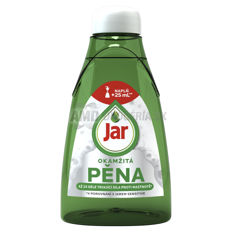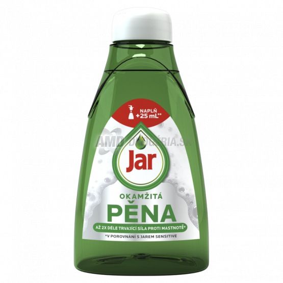Prostriedok na ručné umývanie riadu s tekutou penou JAR Active zaistí neuveriteľnú čistiaca sila proti mastnote! Vďaka revolučnej odmasťovacej sile okamžitej peny bude umývanie riadu rýchle a jednoduché. Už nemusíte namáčať a používať špongiu, aby ste vytvorili penu – okamžitá pena JAR Active je pripravená zabezpečiť žiarivé výsledky a dlhotrvajúci lesk!