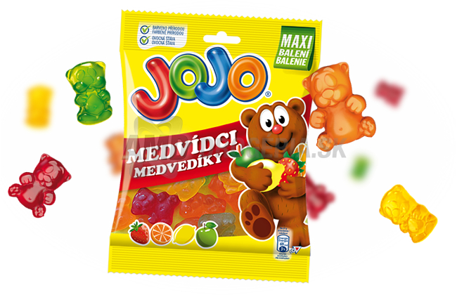 JOJO Medvedíky sú mäkké a šťavnaté vďaka tomu, že obsahujú ovocnú šťavu.
