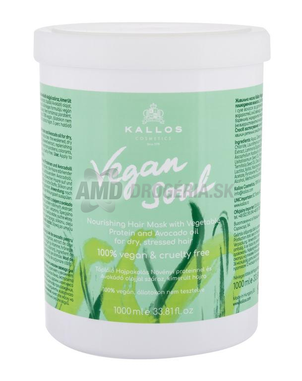 Výživná maska bohatá na rastlinné bielkoviny posilňujúce vlasy, výťažok z morských rias, výživný avokádový olej, makadamový olej, arganový olej a vitamíny. Špeciálne zloženie tejto masky vyživuje a hydratuje suché a slabé vlasy. Neobsahuje parabény, farbivá, živočíšne látky, silikón, minerálny olej, je 100% vegán, netestovaná na zvieratách