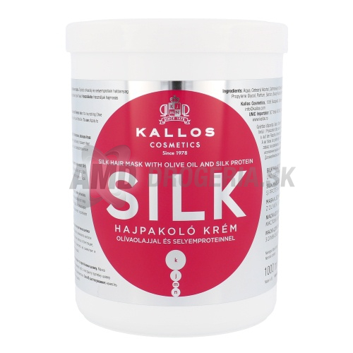 Kallos Silk maska s proteínmi hodvábu a extraktu oleja intenzívne hydratujú a vyhladzujú vlasy, odstraňujú známky starnutia, vyživujú, zjemňujú a udržujú pružnosť vlasov.
