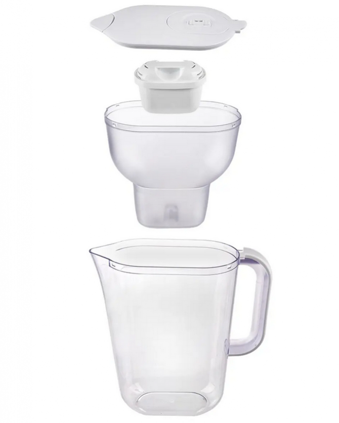 Vyrobená z kvalitného transparentného plastu SAN (nádoba) a ABS (biele viečko), spĺňa štandardy pre styk s pitnou vodou. Ideálna doma, v kancelárii, na chalupe, dovolenke či v karavane. Po vybratí filtra slúži na servírovanie nápojov. Údržba: umyť v teplej vode so saponátom.