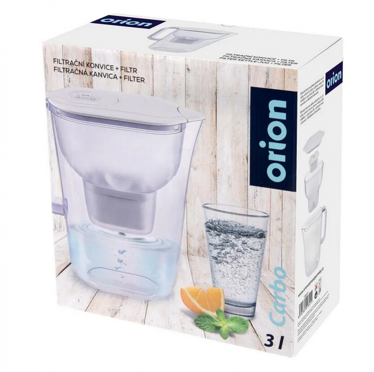 Jednoduchá filtračná kanvica Carbo s účinným filtrom (súčasť balenia) zbavuje vodu nežiaducich látok ako tvrdosť, chlór, olovo, meď, zinok, pesticídy či herbicídy. Celkový objem je 3 l, prefiltrovanej vody max. 1,1 l – voda je tak chutnejšia, zdravšia a bez nepríjemných pachov. Manuálny indikátor na viečku sleduje životnosť filtra.