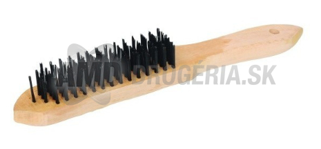 Použitie: Oceľový kartáč je určený pre ručné čistenie bežných ocelí od hrdze, starých náterov a hrubých nečistôt. Jeho štyri rady oceľových drôtov sú dostatočne robustné, aby efektívne odstránili nečistoty a povlaky na kovových povrchoch.