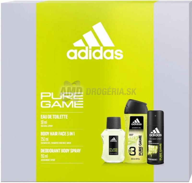 Každé štyri roky sa ľudia z celého sveta spoja, aby ukázali, ako veľmi zbožňujú jeden šport - futbal. V rámci osláv futbalového šampionátu, v Juhoafrickej republike v roku 2010, vytvoril Adidas limitovanú edíciu Pure Game. Táto mužná vôňa spája jej nositeľa, vášnivé futbalistu - fanúšikov aj hráčov z celého sveta. A to dokazuje, že v tímovej práci nie je nič nemožné. Adidas sa inšpiroval bohatou rozmanitosťou a silou Juhoafrickej republiky. Vôňa sa otvára prekvapujúcou zmesou iskrivého grapefruitu a mandarínky, podtrhnutou šumivú zelenou bazalkou a ľahko koreneným korením. Srdce je zahalené do žiarivej elegancie a modernej mužnosti vďaka aromatickej levanduli, drevu Guaiac a cyprusmi. Základ odhaľuje prírodný aspekt tropického polokra pačuli a dreva Tamboti spoločne so zmyselnými nótami fazule Tonky a kadidla. Vôňa bola uvedená na trh v roku 2010.