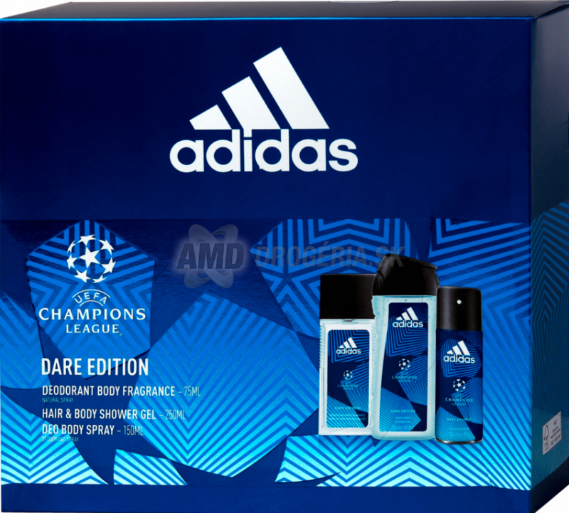 Adidas UEFA Champions League odráža nadšenie, vytrvalosť a silu. Je určený pre moderného, športovo založeného muža. Victory Edition z kolekcie UEFA Champions League je drevito-aromatická vôňa. Hlavu tvorí citrusy a lístky paradajky. V srdci ucítite zaujímavú kombináciu levanduľa, ružového korenia a ruže. Kompozíciu uzatvára pačuli a cédrové drevo.