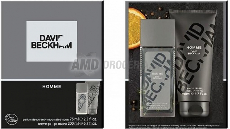 David Beckham Homme je drevito-korenená vôňa uvedená na trh v roku 2011, ktorá sa snaží poodhaliť esenciu úspechu futbalovej hviezdy, módnej ikony, manžela a otca. Tento parfum vydáva David Beckham sám, bez Victorie a celý názov znie Homme by David Beckham. Veľký futbalový talent David Beckham, ktorý sa narodil v Londýne roku 1975, sa počas niekoľkých rokov stal tvárou športových kampaní aj módnych symbolov. Predstavenie jeho prvej vône veľmi rýchlo naplnilo očakávania, pretože spája nielen športovú sviežosť s eleganciou.Je určená odvážnym a energickým mužom.Pod značkou David Beckham nájdete príjemnú ponuku pánskych parfémov a čo viac - každý z nich má aj očarujúce dámsky náprotivok. Vôňa David Beckham sľubujúcich čistý a luxusný zážitok.Buďte tým, kto sa dokáže presadiť všade, kde sa objaví. Presne pre takých mužov, úspešných a charizmatických, je toaletná voda David Beckham Homme ako stvorená. Poodhaľuje tajomstvo úspechov futbalovej hviezdy aj módnej ikony a skrýva v sebe nezameniteľný Beckhamov šarm.