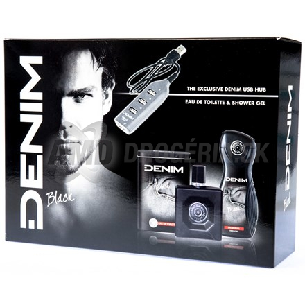 Pánska kozmetická súprava – obsahuje: DENIM BLACK toaletná voda 100ml + Sprchovací gél 250ml + USB rozbočovač