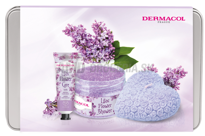 KAZETA DERMACOL FLOWER SERIK PLECH KRÉM NA RUKY 30ML + TELOVÝ PEELING 200G + VONNA SVIEČKA 1KS