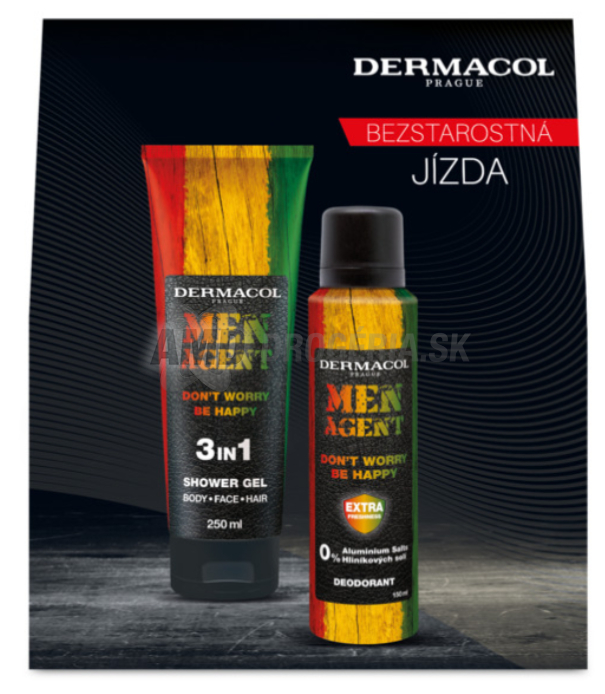 KAZETA DERMACOL MEN AGENT DON´T WORRY BE HAPPY SPRCHOVÝ GÉL 3V1 250ML + DEZODORANT 150ML