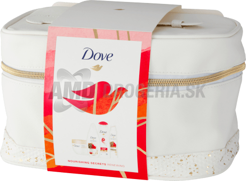 Darčeková sada Dove Nourishing Secrets Renewing pre šetrnú starostlivosť o telo a vlasy. Zhlboka sa nadýchnite a ponorte sa do sveta ghanských kozmetických rituálov so sprchovacím gélom a antiperspirantom Dove African Nurturing Ritual. Zvodná vôňa kakaového masla a kvetu ibišteka s výživným zložením pre hladkú a hebkú pokožku. Telový krém Dove DermaSpaGoodness vyhladí a rozjasní pokožku, a šampón Dove Color Care sa postará o žiarivú farbu vašich vlasov. To všetko v luxusnej kozmetickej taštičke, ktorú si môžete vziať kamkoľvek so sebou.