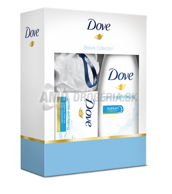 KAZETA DOVE EXFOLIATING SPRCHOVÝ GÉL 250ML + TUHÉ MYDLO 100G + ŠPONGIA RUŽA X17