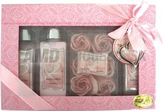 Atraktívna darčeková sada Perfect Love No.16 pozostáva zo 120 ml sprchového gélu, 120 ml telového mlieka, 120 ml perličkového kúpeľa, 6 * 4 g mydla, vôňa: ruža