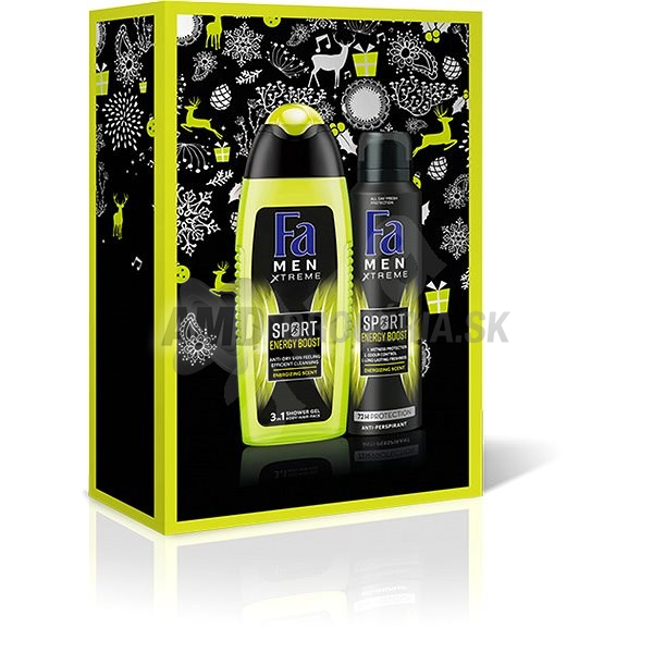 Darčeková kozmetická súprava Fa Men Sport Energy Boost obsahuje všetko, čo potrebujete pre poriadne osvieženie. Set obsahuje sprchový gél Fa Men Sport Energy Boost 400 ml a dezodorant Fa Men Sport Energy Boost 150 ml.