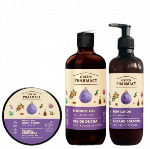 darčekový balíček od značky Green Pharmacy je ideálny na každodennú starostlivosť o pokožku tela, ponúka jemnú a účinnú starostlivosť s pomocou prírodných extraktov. Spojenie výťažku z figy a cenného arganového oleja dodáva pokožke sviežosť, hydratáciu a podporuje jej prirodzenú krásu.
