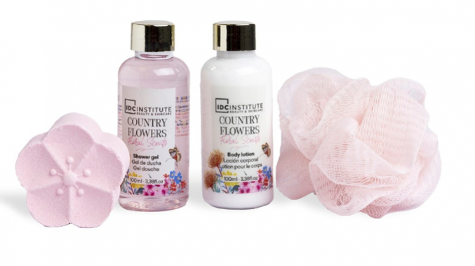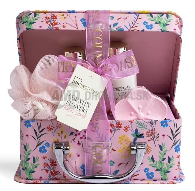 KAZETA KUFRÍK IDC COUNTRY FLOWERS SPRCHOVÝ GÉL 100ML + TELOVÉ MLIEKO 100ML + TABLETA DO KÚPEĽA 60G + ŠPONGIA