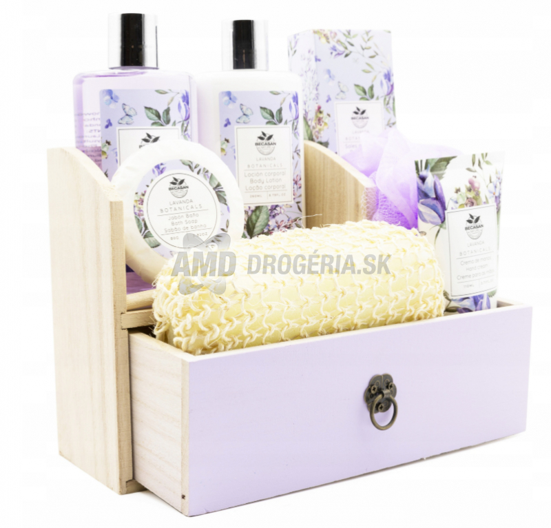 KAZETA LEVANDULA SPRCHOVÝ GÉL 260ML + TELOVÉ MLIEKO 260ML + KRÉM NA RUKY 110ML + SOĽ DO KÚPEĽA 100G + TUHÉ MYDLO 80G + RÚŽA KUPACIA + SISALOVA ŠPONGIA