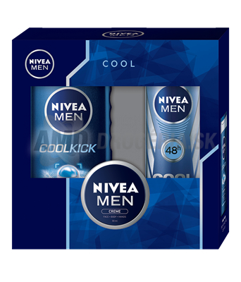 Potešte svojho muža darčekovú kazetou Nivea! Táto s názvom cool Kick & Creme obsahuje všetko pre svieži pocit, ktorý vydrží celý deň. Vnútri nájdete sprej antiperspirant cool Kick doplnený sprchovým gélom cool Kick. A nechýba ani krém Nivea Men.