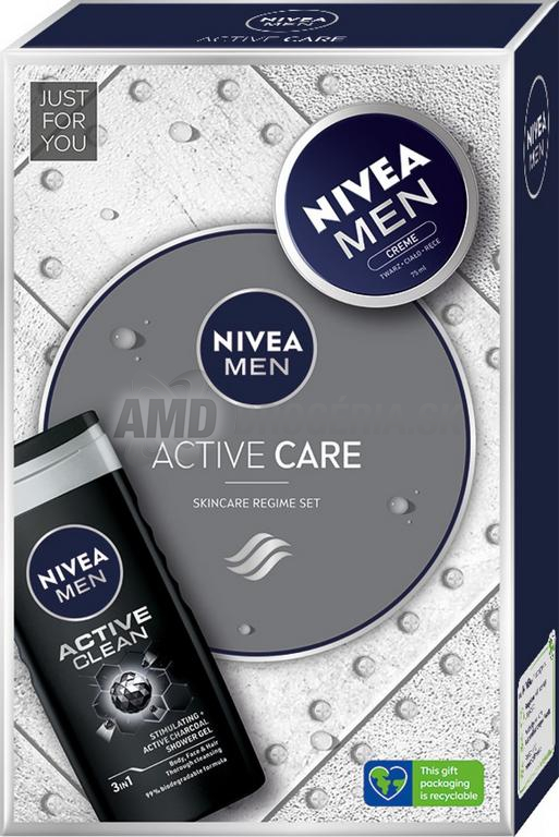 Sprchový gél pre telo, tvár aj vlasy nielen príjemne mužne vonia, ale aj šetrí čas v sprche. Rovnako funkčný je aj ľahko vstrebateľný krém, ktorý je vôbec prvým univerzálnym krémom vyvinutým len pre mužov. Oboje je určené na každodenné použitie. Stavte na istotu. Súprava obsahuje: Sprchový gél pre mužov Active C lean 250 ml Univerzálny krém pre mužov Men (Creme) 75 ml