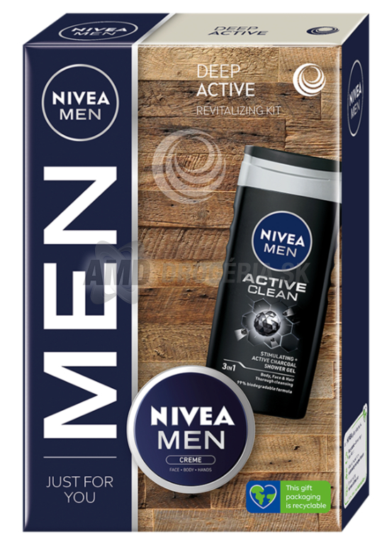 Kazeta NIVEA MEN Deep Active je ideálnym darčekom pre mužov, ktorí preferujú jednoduchú a efektívnu pokožku. Obsahuje dva dôležité produkty pre dennú starostlivosť: